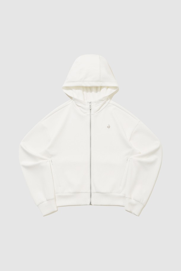 여성 더블텐션2.0 루즈핏 세미크롭 후드 집업 - 크림 QR122OFT11
