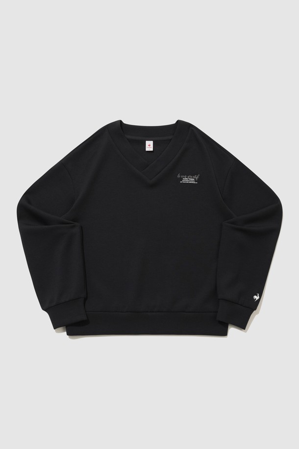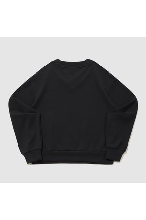 여성 더블텐션2.0 루즈핏 브이넥 맨투맨 - 블랙 QR122OFS11
