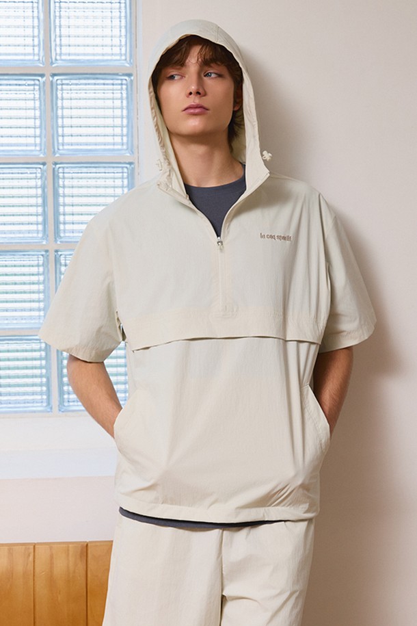 유니 스트레치 타슬란 루즈핏 반팔 아노락 자켓 - 베이지 QR223LJK42