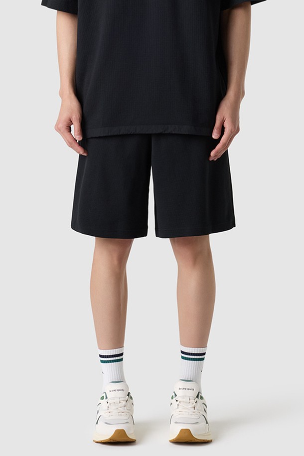 남성 와플 루즈핏 5부 숏팬츠 - 블랙 QR121LHP21