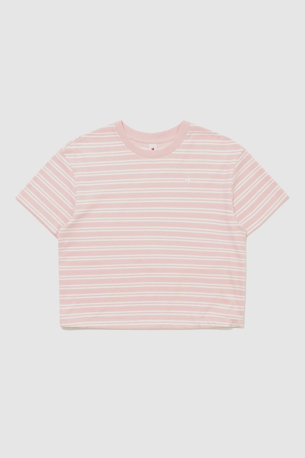 여성 스트라이프 루즈핏 반팔티 - 핑크 QR222ORS41
