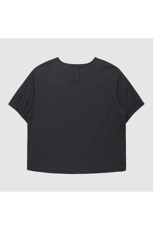 여성 쁘띠 플리세 루즈핏 경량 우븐 반팔 피스테 - 블랙 QR222OWT51