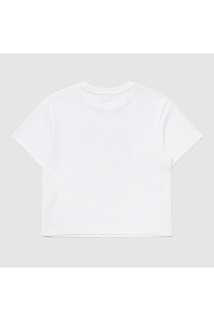 여성 루즈핏 그래픽 면 슬럽 티셔츠 - 화이트 QR222ORS53