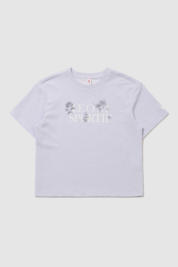 여성 루즈핏 그래픽 면 슬럽 티셔츠 - 퍼플 QR222ORS53