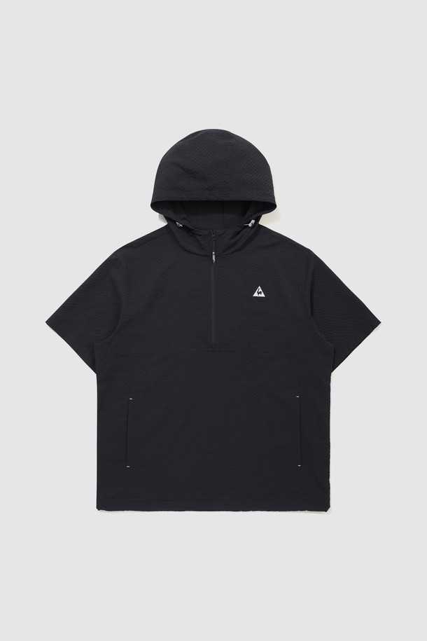 유니 시어서커 루즈핏 반팔 아노락 - 블랙 QR223LJK62