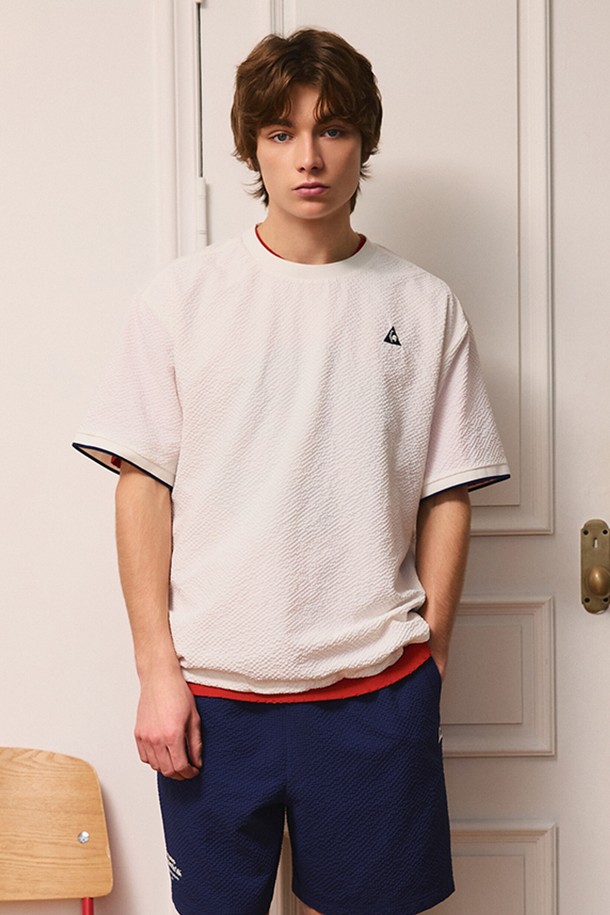유니 시어서커 루즈핏 반팔 피스테 - 크림 QR223LWT61