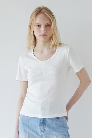 프런트 셔링 반팔티셔츠 - 아이보리