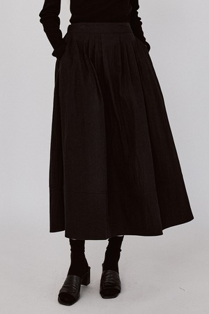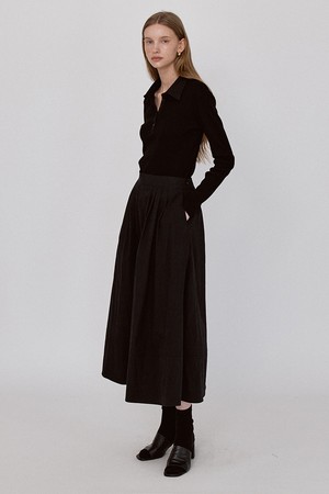 Pleats Flow Banding Long Skirt - Black