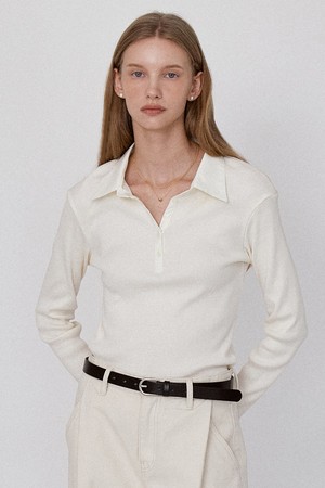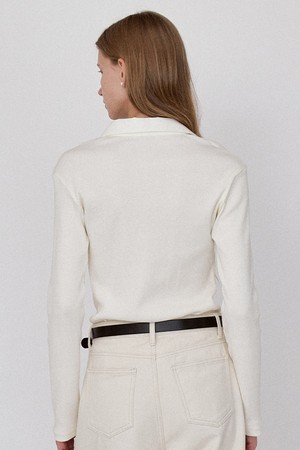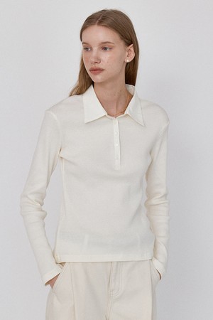 Ribbed Panel Classic Collar T-Shirt - Cream