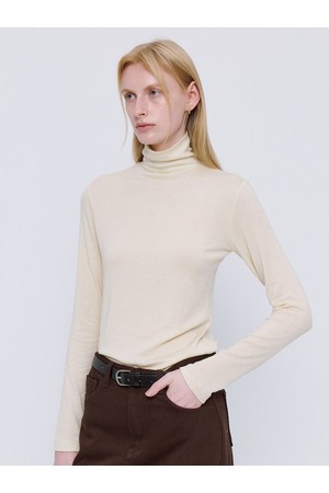 Soft Wool Tencel Turtleneck T-Shirt - Cream