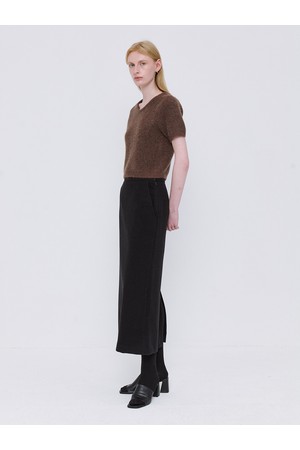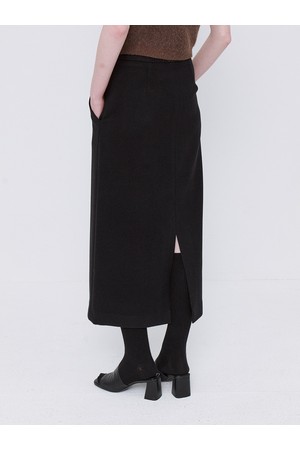 Basic Wool Tencel Long Skirt - Black