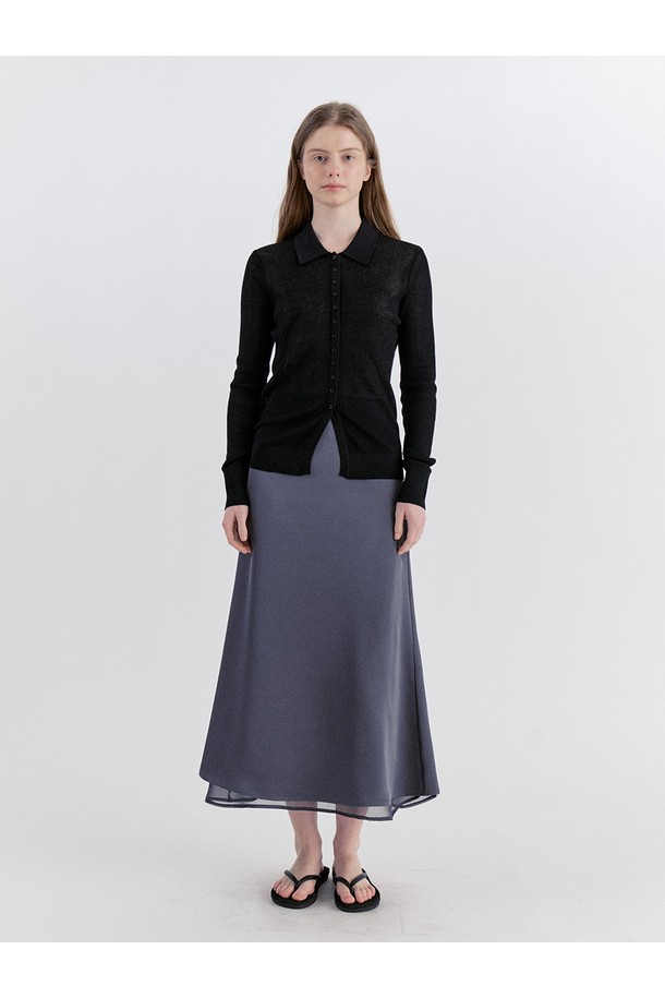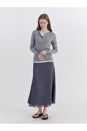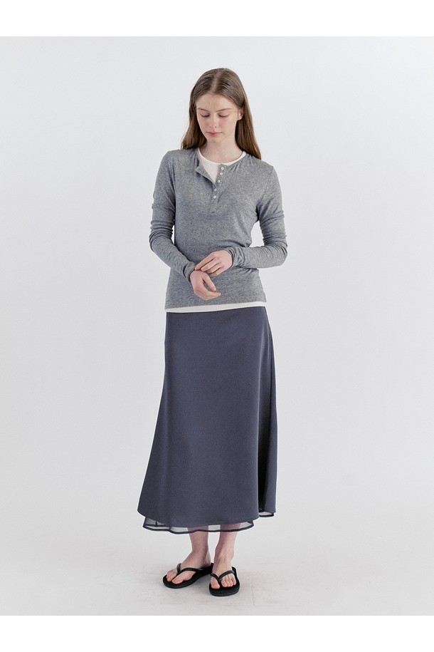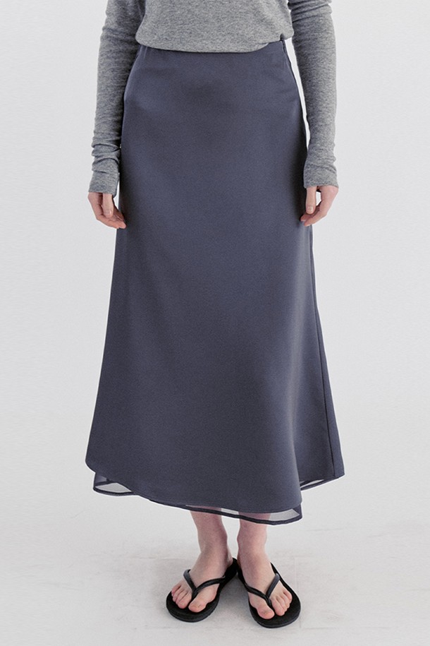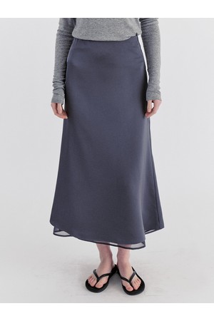 Classic Layered Satin Chiffon Long Skirt - Gray