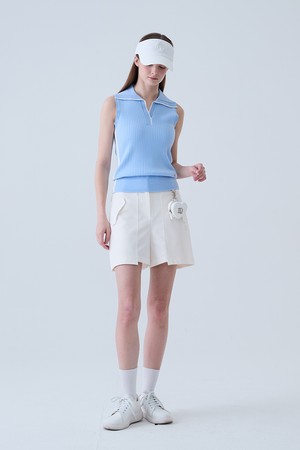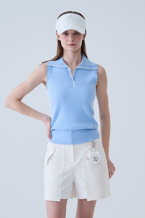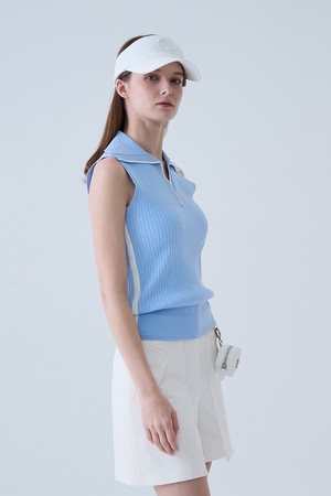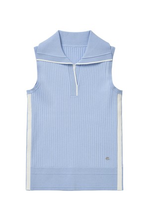 골지 배색 카라 나시 니트 BLUE