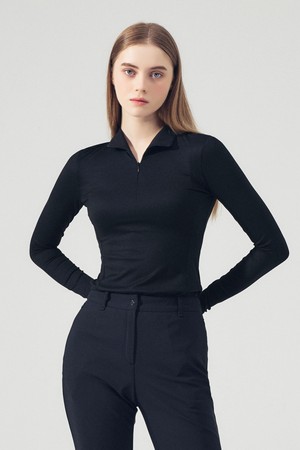 슬림 지퍼 카라넥 티셔츠 BLACK