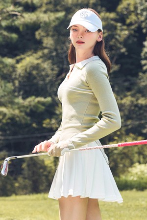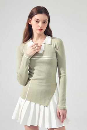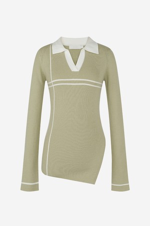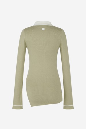 사선 슬릿 골지 카라 니트 L/KHAKI