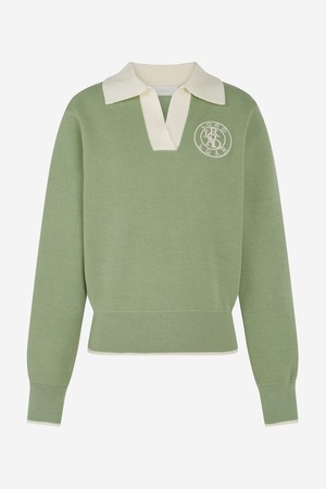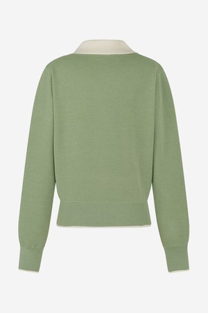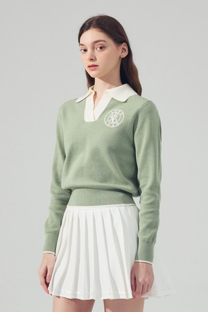 시그니쳐 배색 카라 긴팔 니트 L/KHAKI