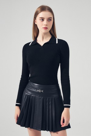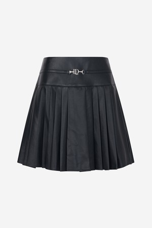 FAUX 레더 플리츠 스커트 BLACK