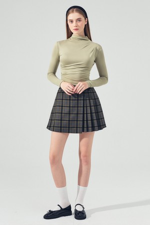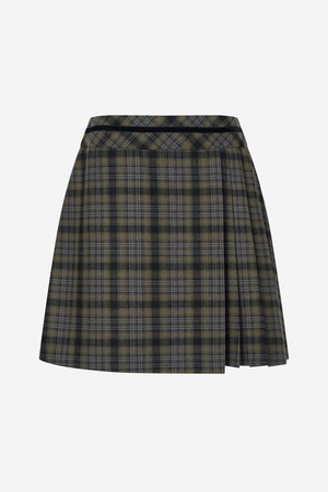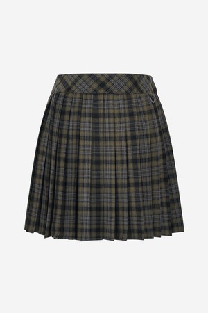 언발란스 체크 랩 플리츠 스커트 D/GREEN