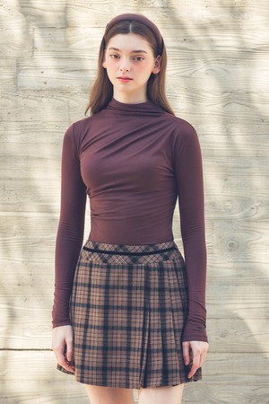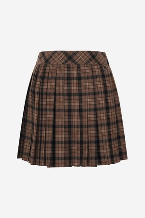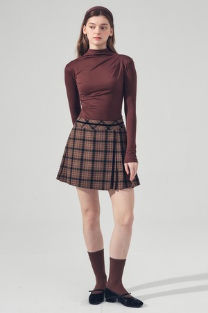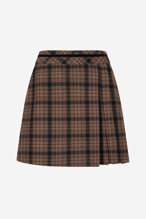 언발란스 체크 랩 플리츠 스커트 BROWN