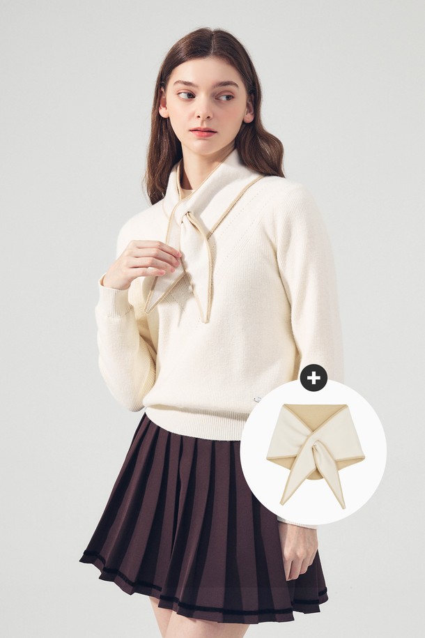 머플러 풀오버 방풍 니트 IVORY