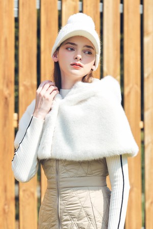 FAUX 퍼 케이프 후드 IVORY