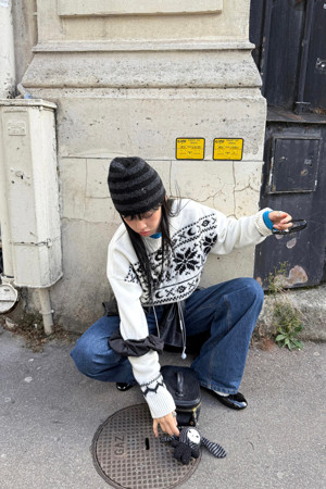 Chouetties by LUCKY CHOUETTE_Stripe Knit Beanie(black)