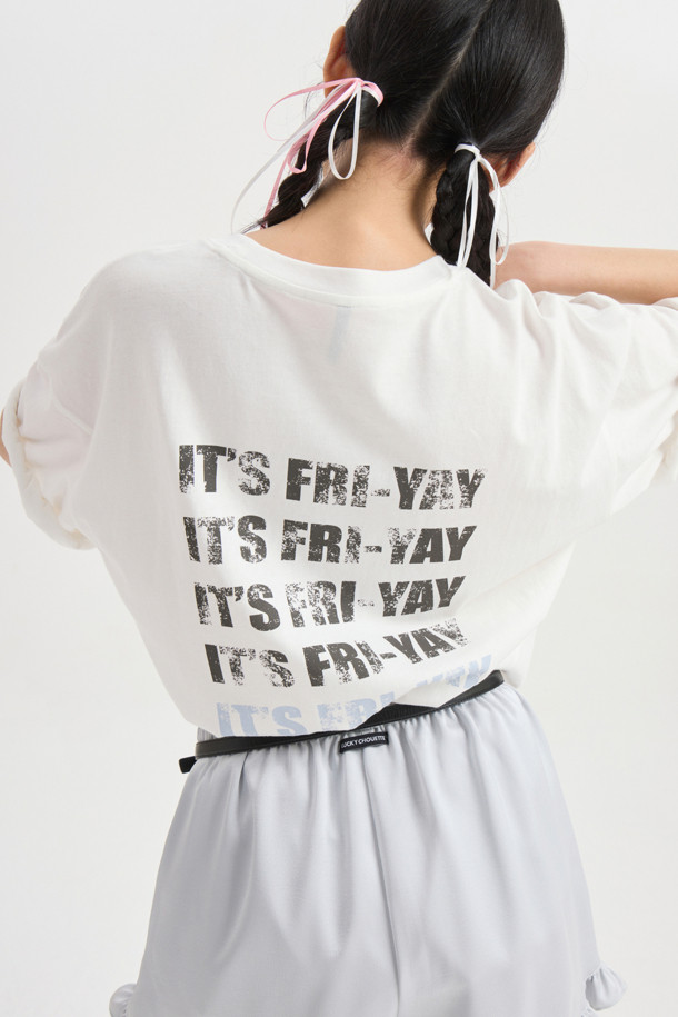 Chouetties by LUCKY CHOUETTE_Back Print Loose Fit Short T-shirt (white)