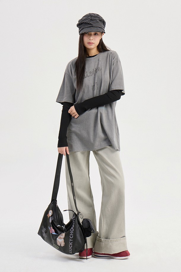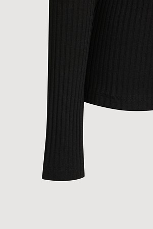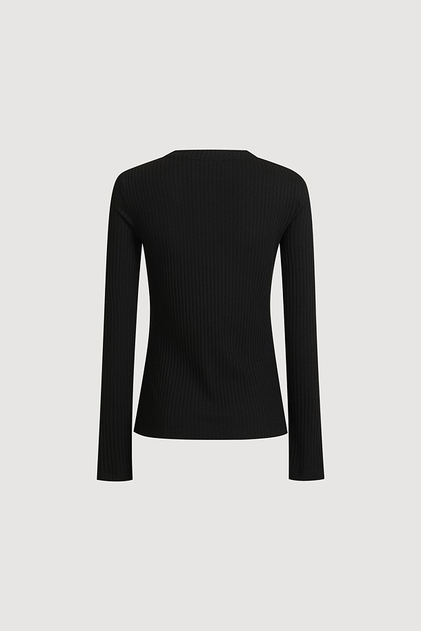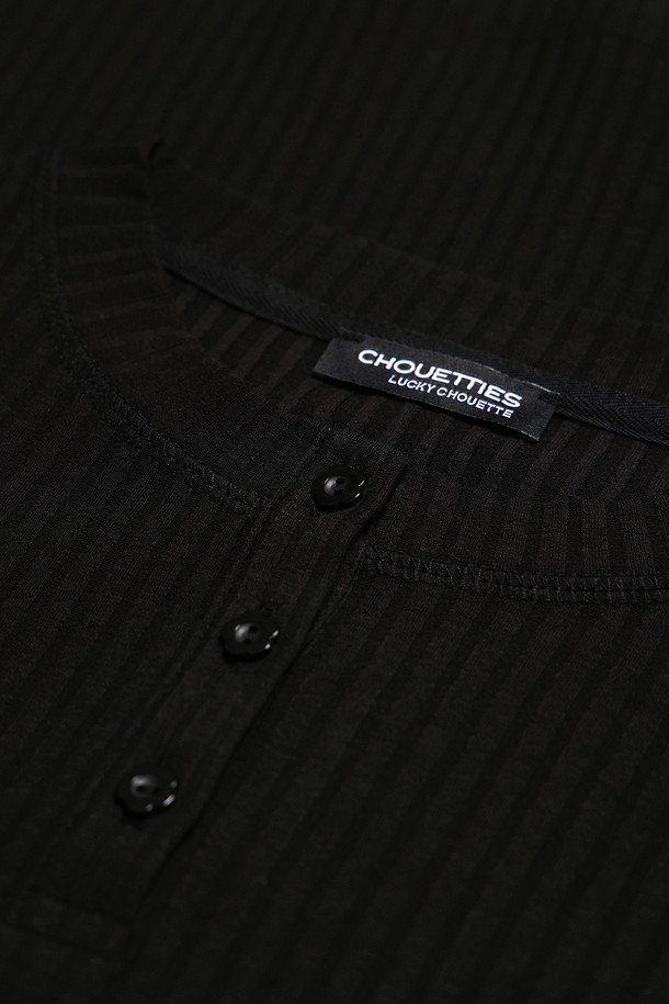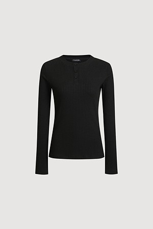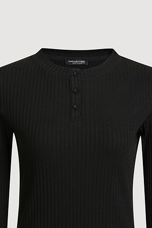 Chouetties by LUCKY CHOUETTE_Henley Neck Ribbed Long Sleeve T-shirt (black)