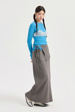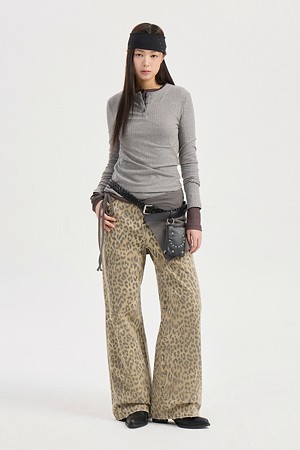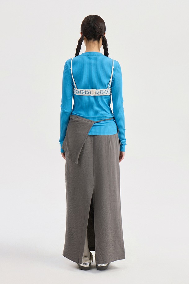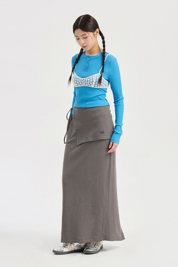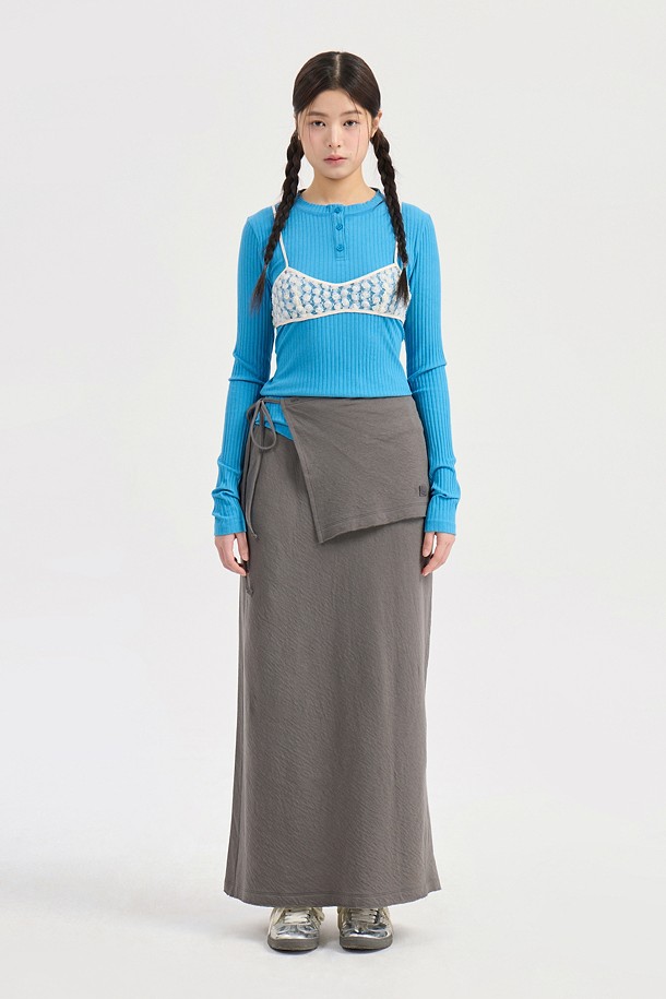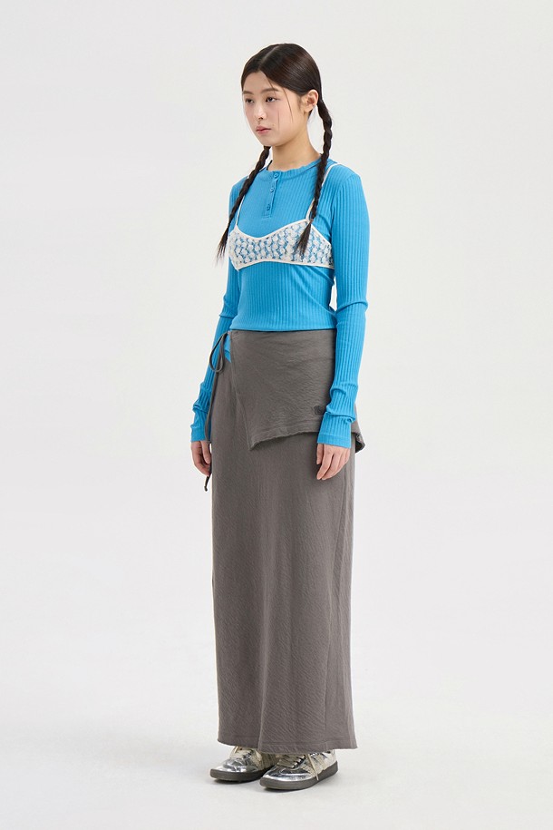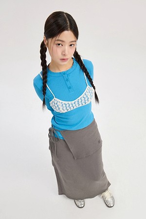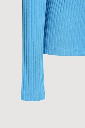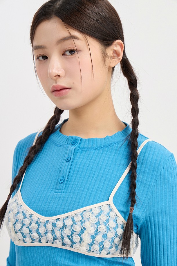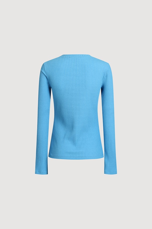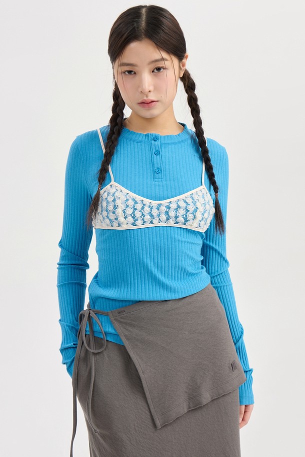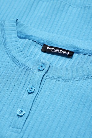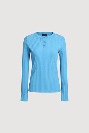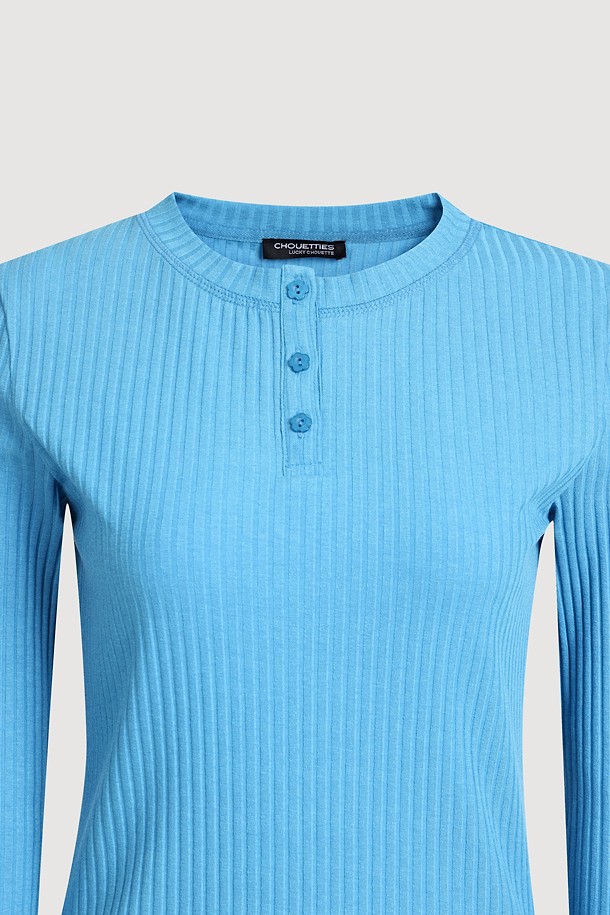 Chouetties by LUCKY CHOUETTE_Henley Neck Ribbed Long Sleeve T-shirt (blue)