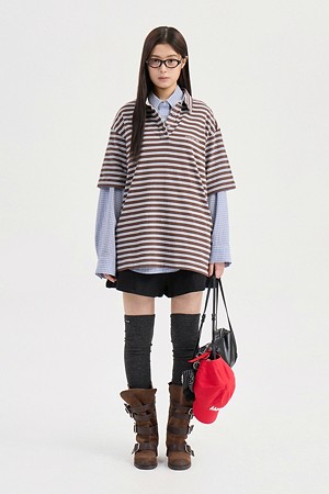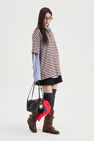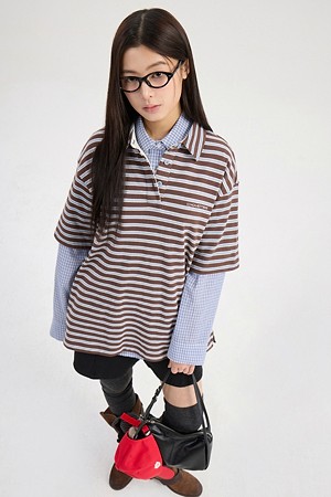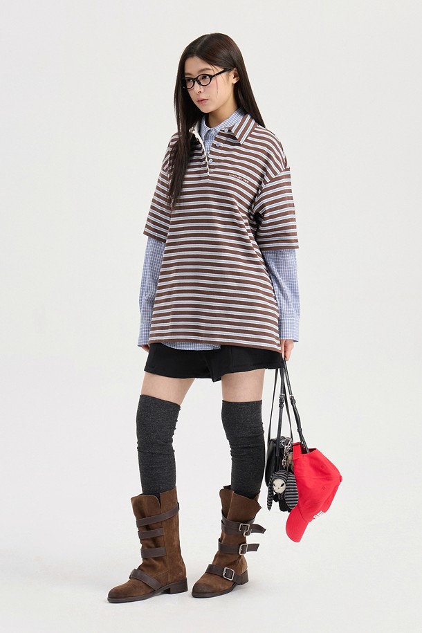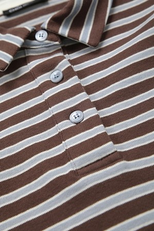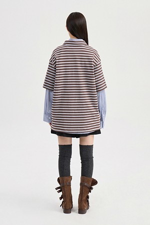 Chouetties by LUCKY CHOUETTE_Stripe Pique Short Sleeve T-shirt (brown)