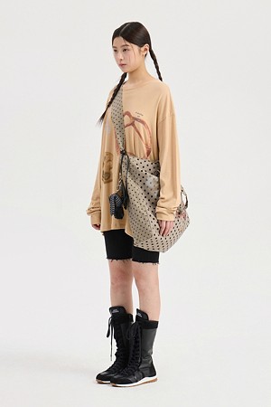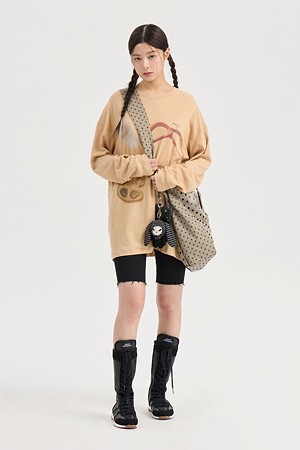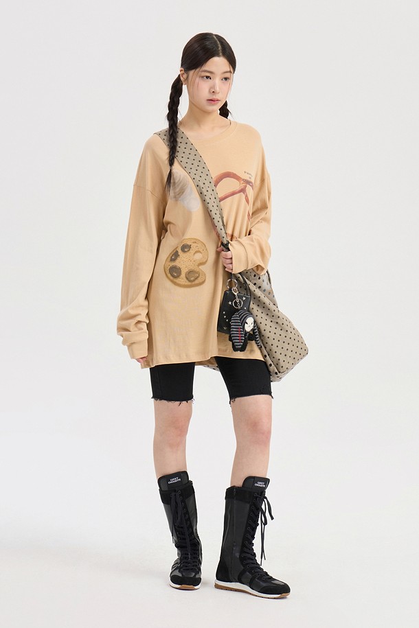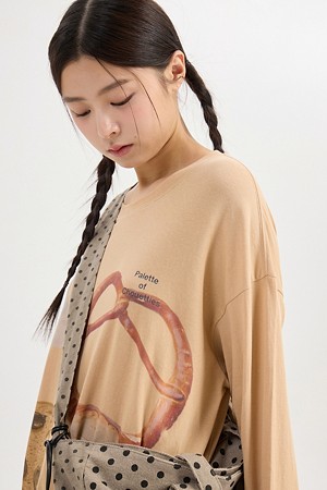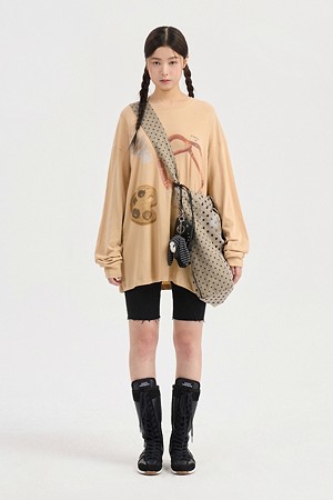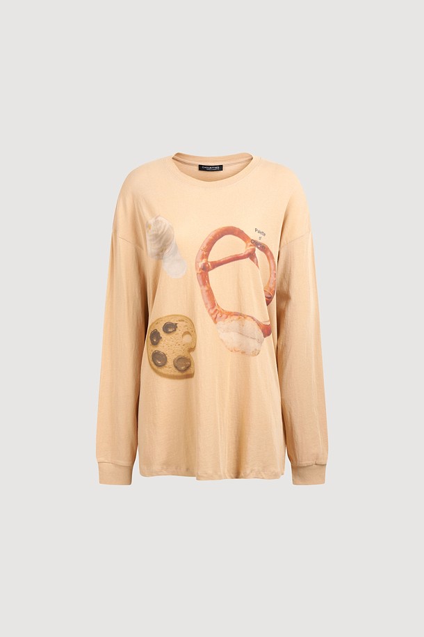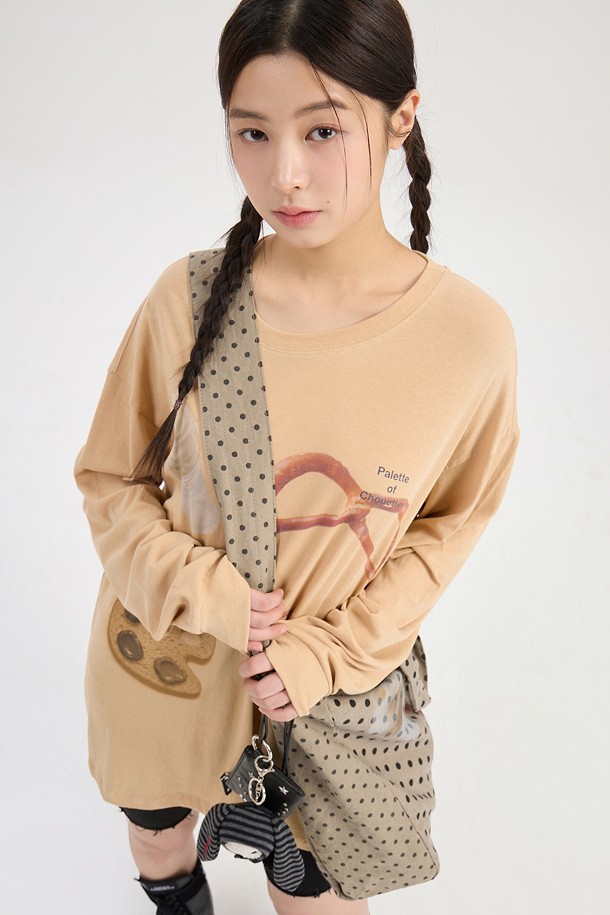 Chouetties by LUCKY CHOUETTE_Graphic Loose Fit Long Sleeve T-Shirt (salmon)