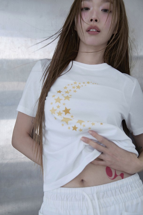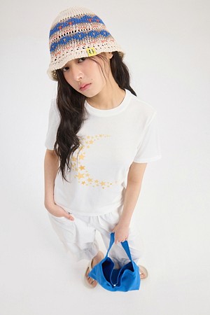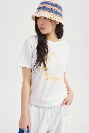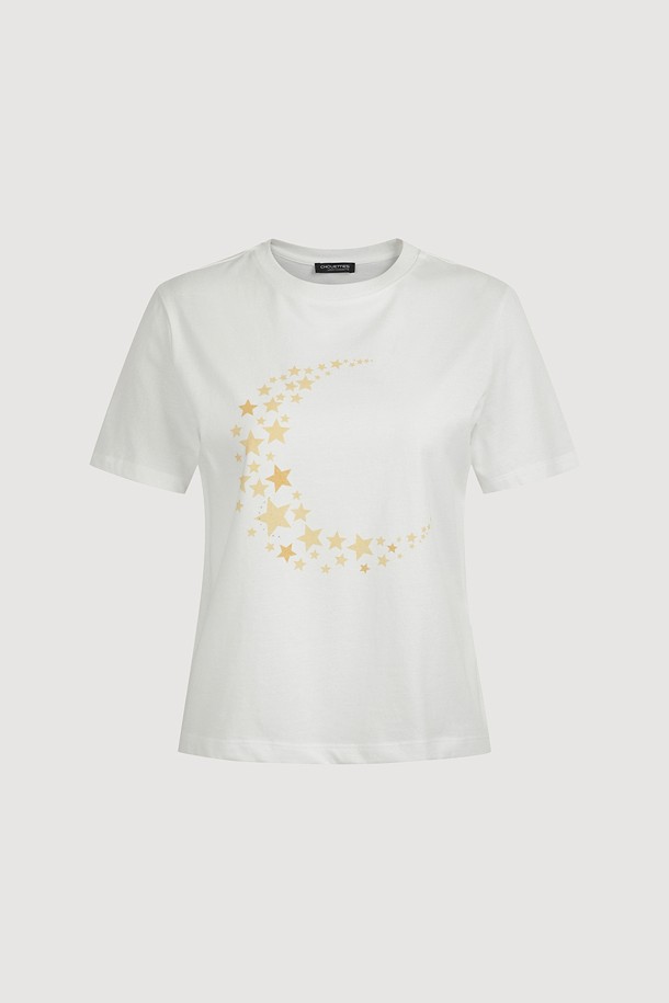 Chouetties by LUCKY CHOUETTE_Slim Fit Moon Graphic Short Sleeve T-Shirt (white)