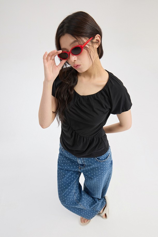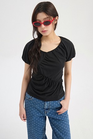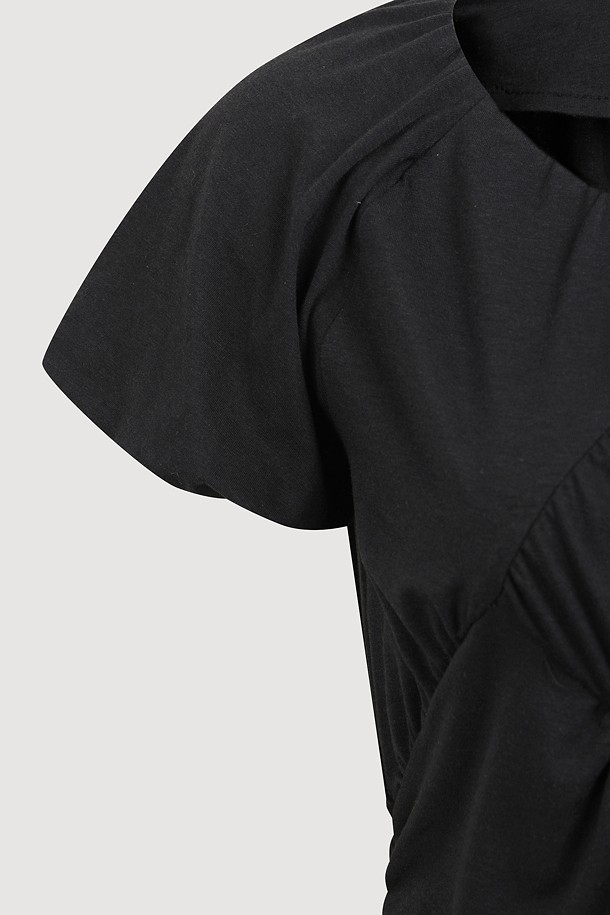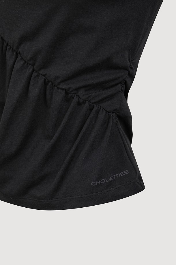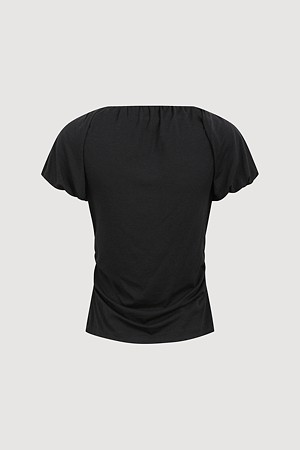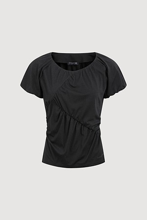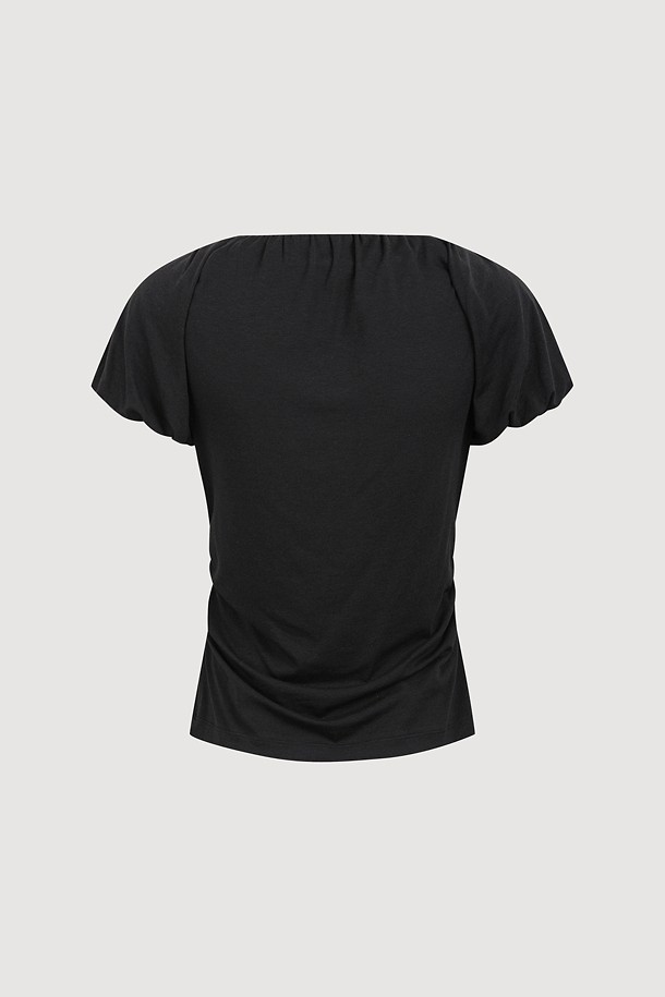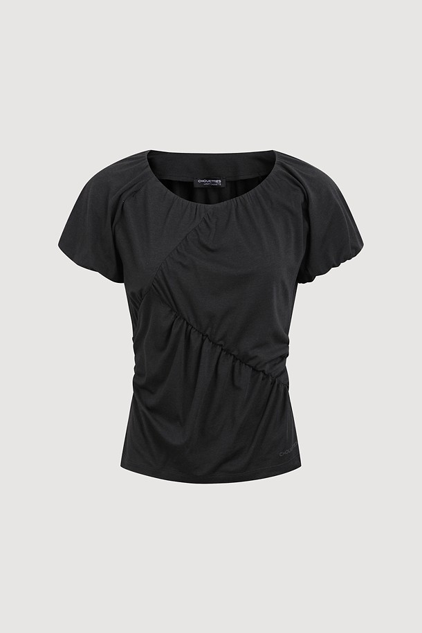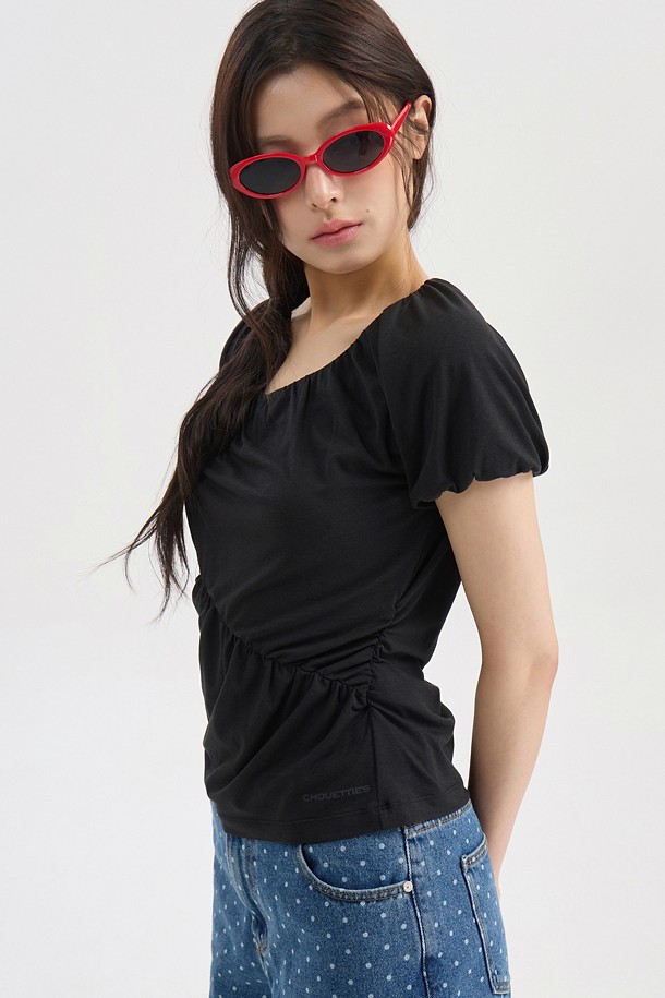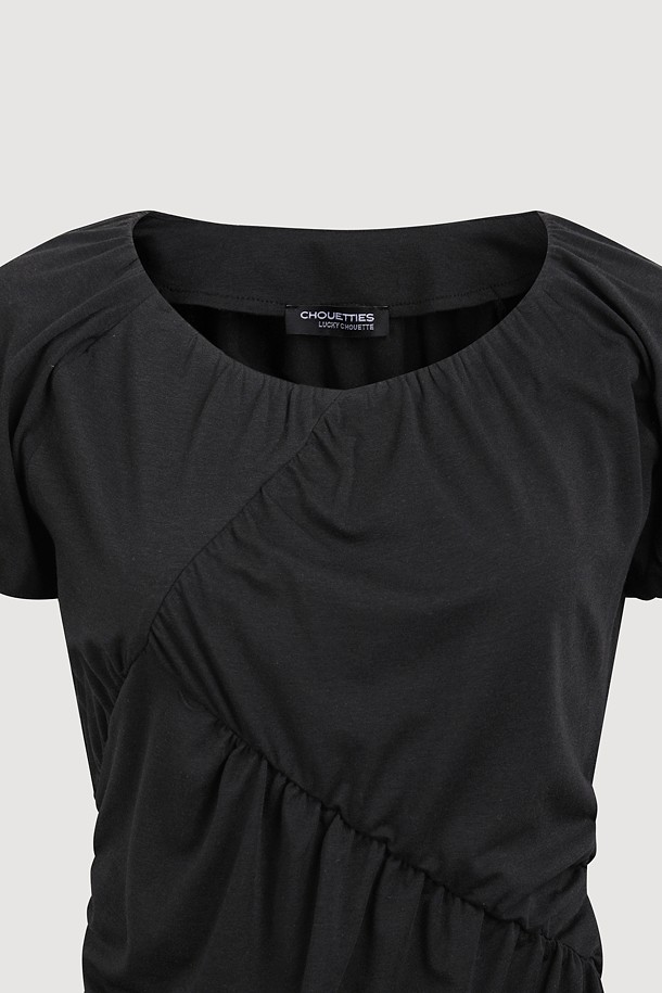Chouetties by LUCKY CHOUETTE_Shirring Detail Short Sleeve T-Shirt (black)