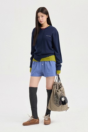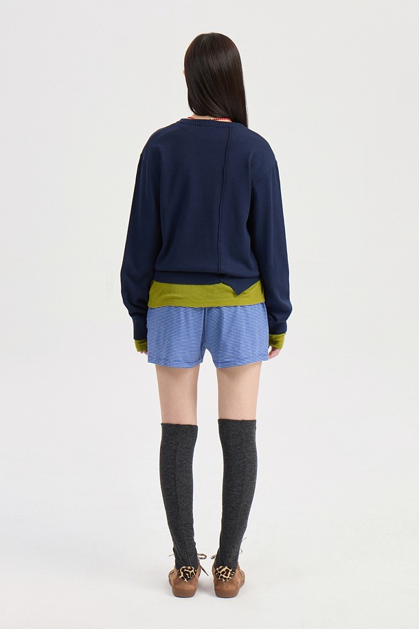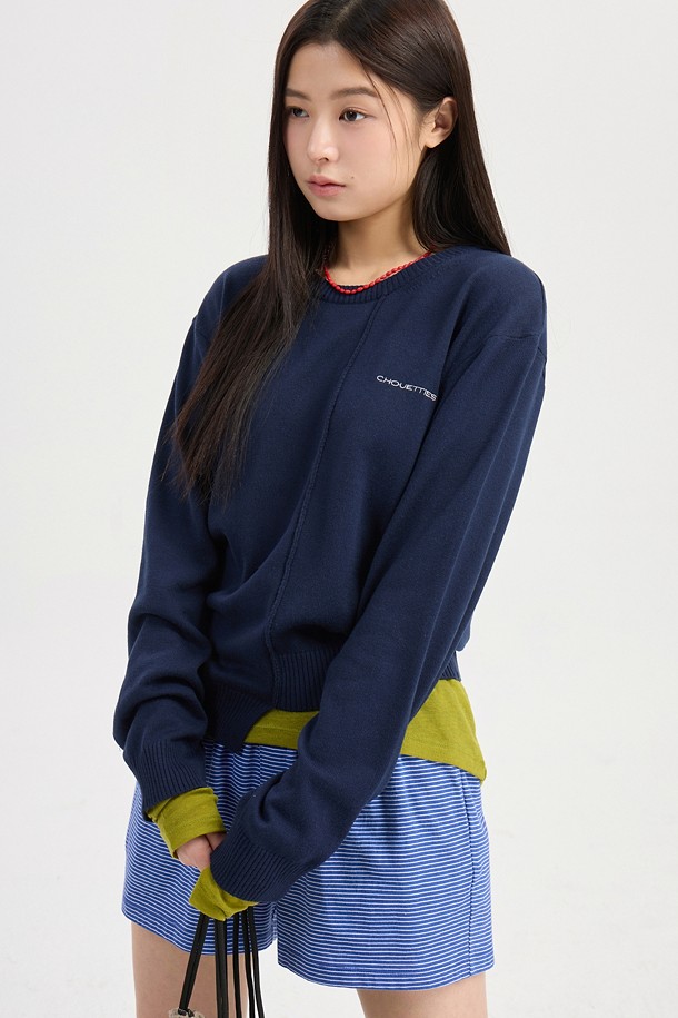 Chouetties by LUCKY CHOUETTE_Unbalance Knit Pullover (dark navy)