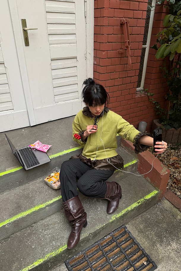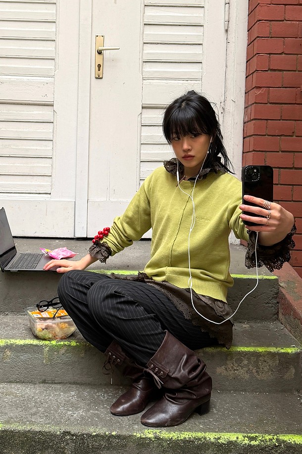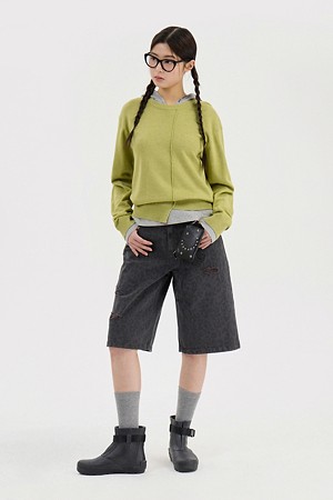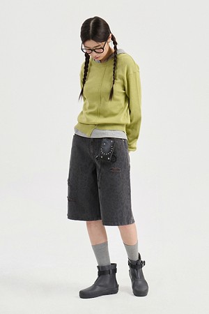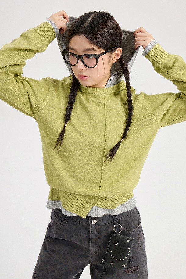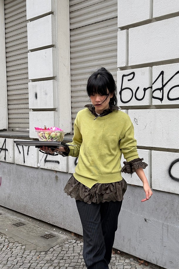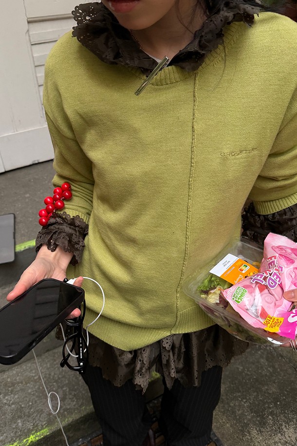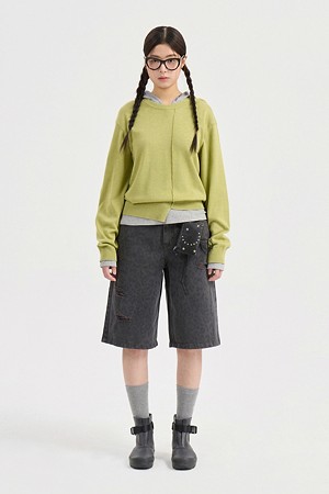 Chouetties by LUCKY CHOUETTE_Unbalance Knit Pullover (olive)