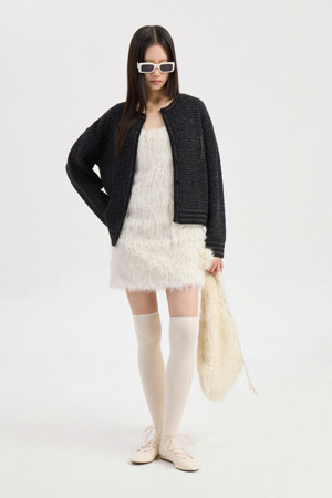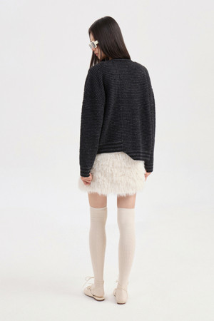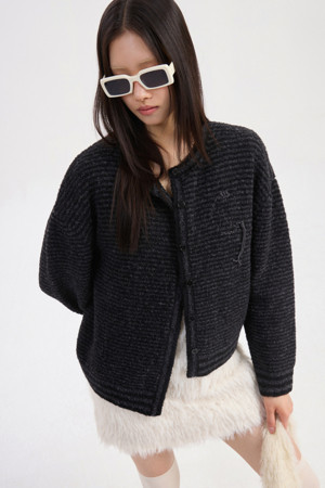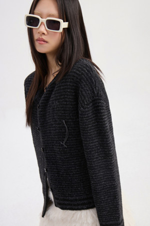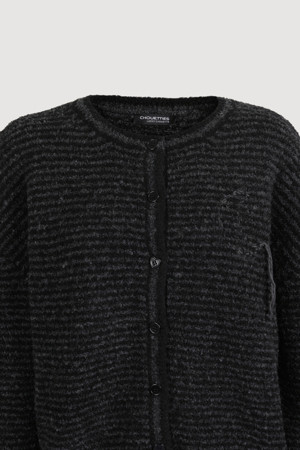 Chouetties by LUCKY CHOUETTE_Unbalance Stripe Knit Cardigan (black)