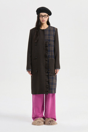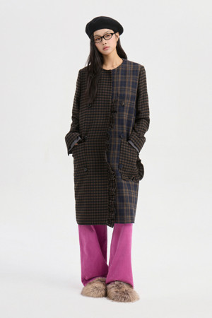Center Frill Round Neck Coat (multi color)