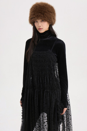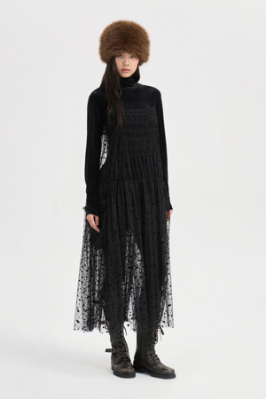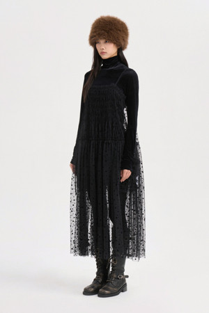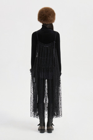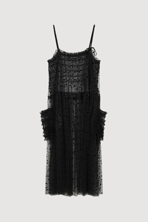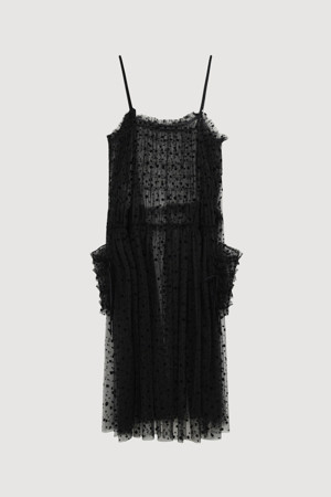 Dot Flocking Slip Dress (black)