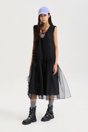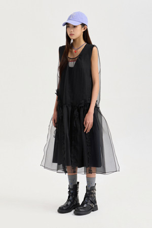 Sleeveless Layering Frill Dress (black)