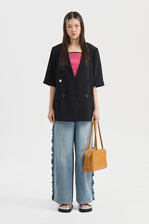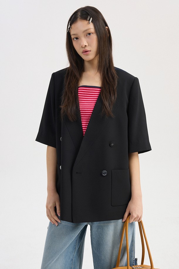 Poly Short Sleeve Front And Back Color Blend Jacket (black)