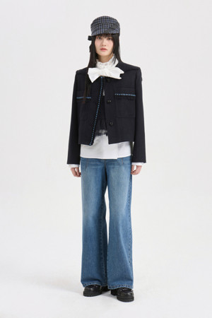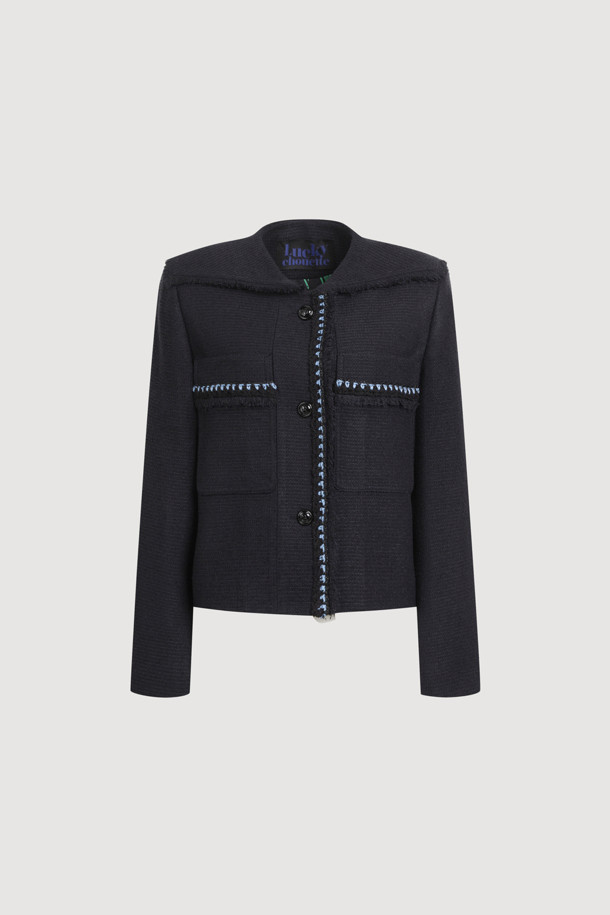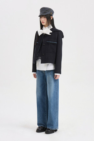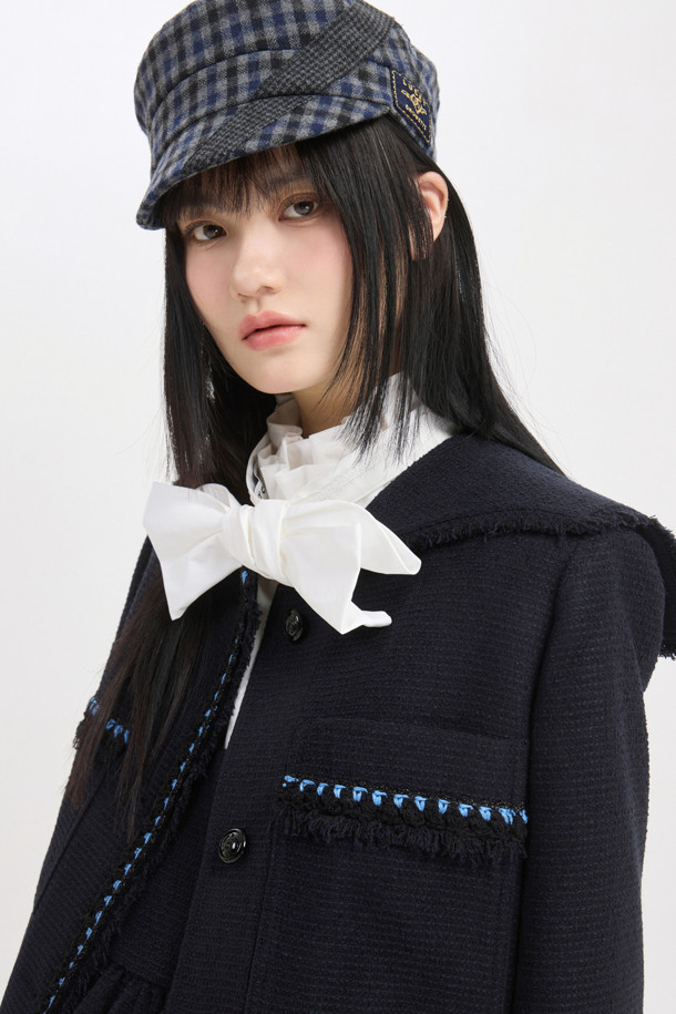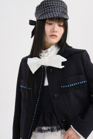 Big Collar Tweed Jacket (dark navy)