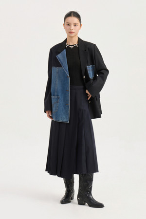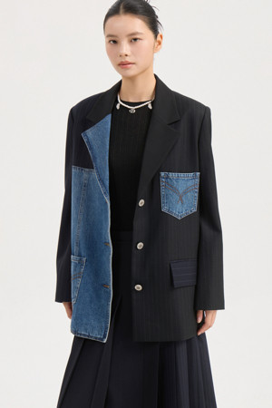 [Re-Order] Denim Patch Mix Jacket (black)