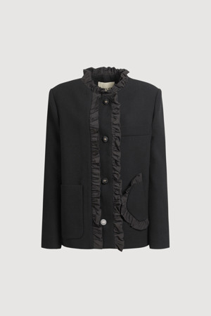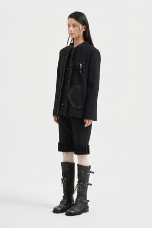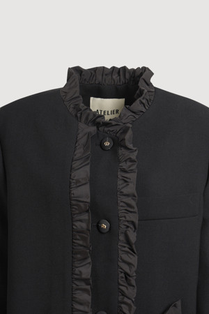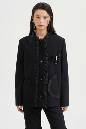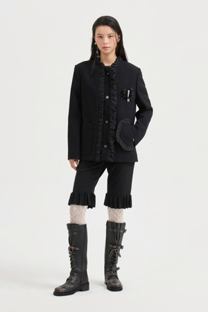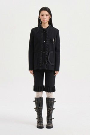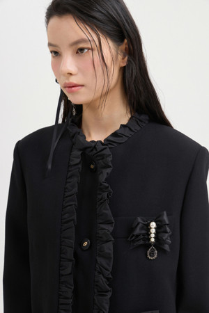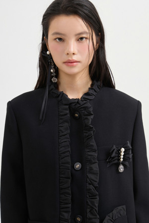 [Atelier] Round Neck Frill Tweed Jacket (black)