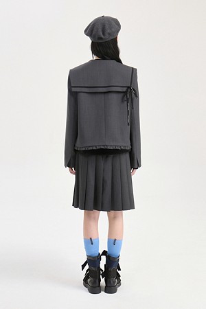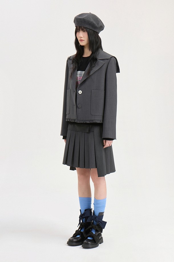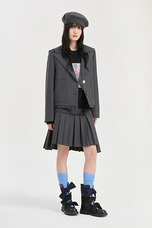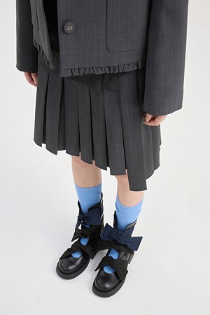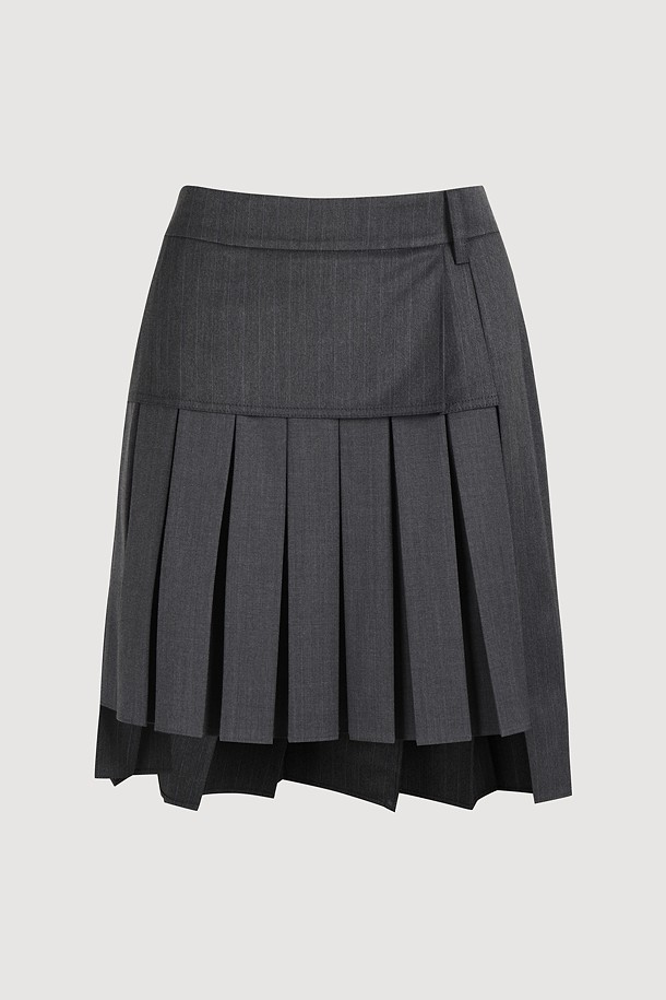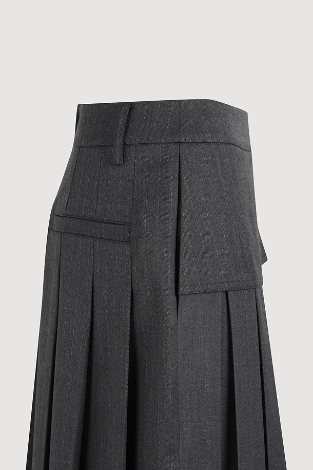 [Re-Order] Mix Pleated Mid Skirt (dark grey)