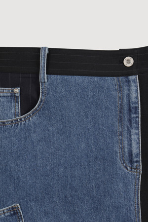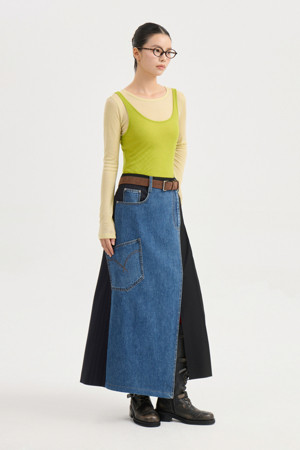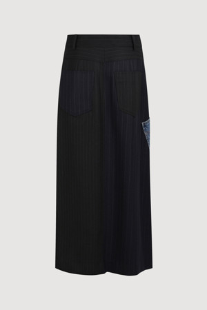 [Re-Order] Denim Stripe Mix Long Skirt (multi color)