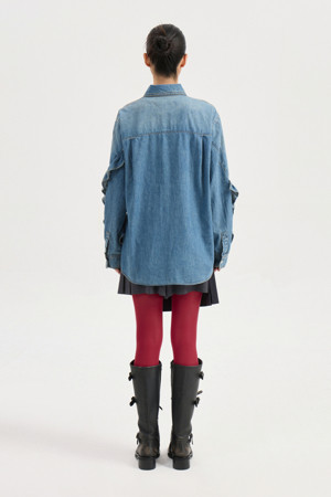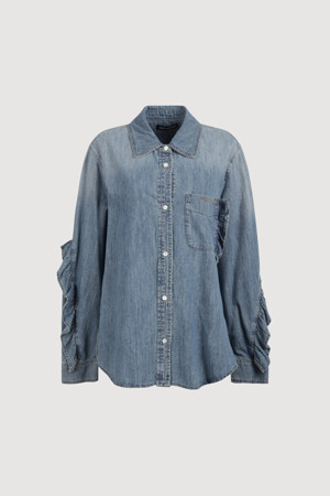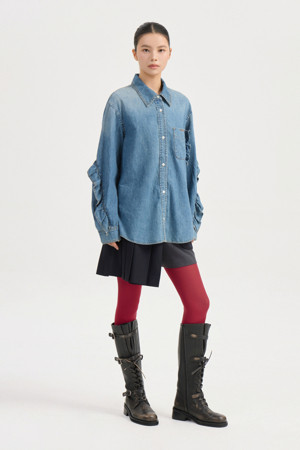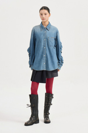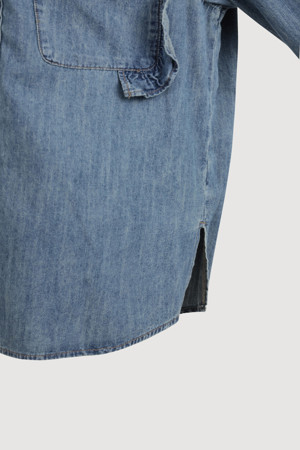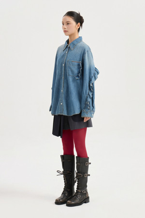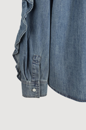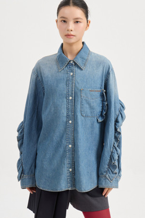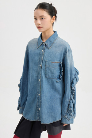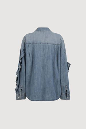 [Re-Order] Frill Denim Shirt Blouse (blue)