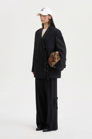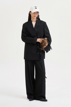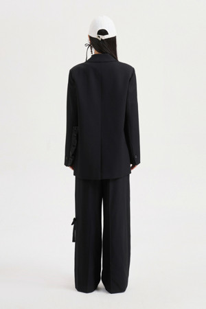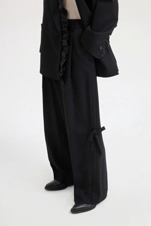 Ribbon Point Wool Wide Pants (black)
