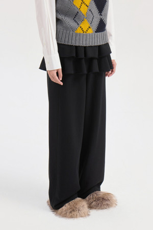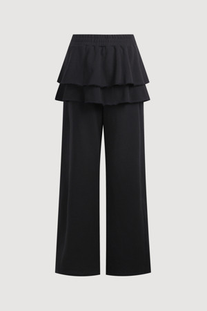 Layered Skirt Jersey Banding Pants (black)