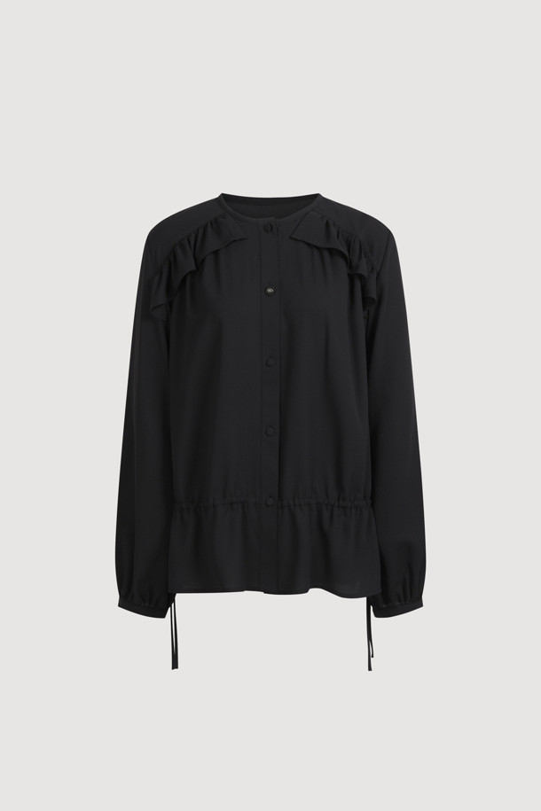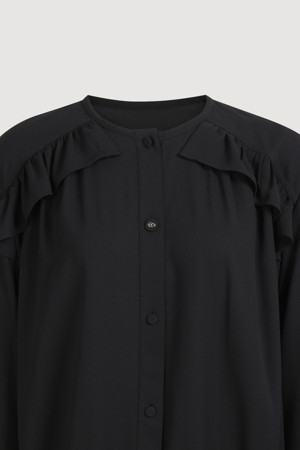 Front Frill Point Poly Blouse (black)