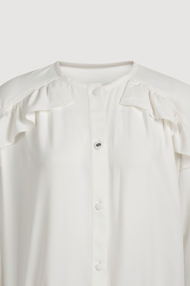 Front Frill Point Poly Blouse (ivory)